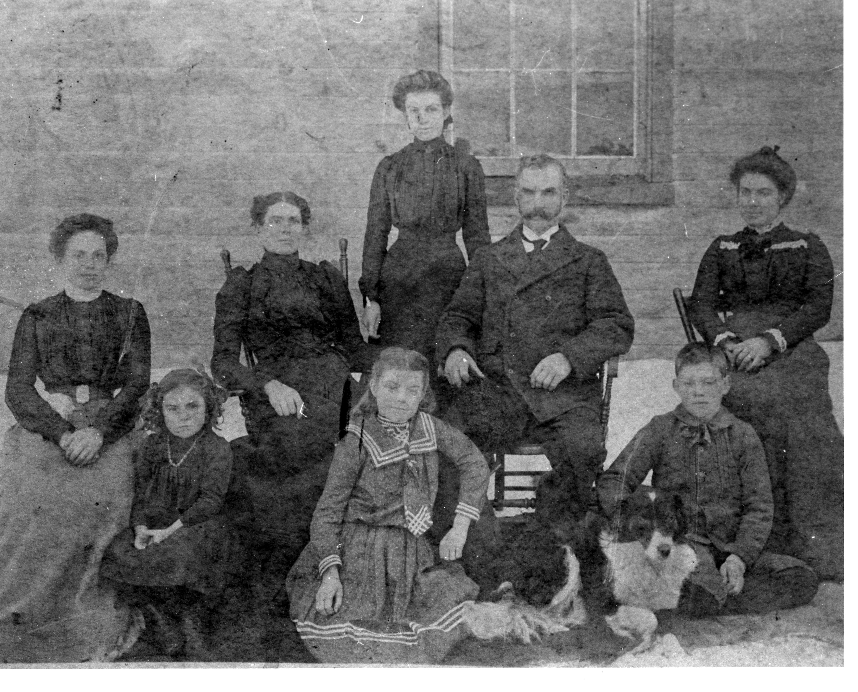 Family of John Whan and Martha Watson (Standing)Ada Elizabeth (born March 15th, 1887) Died May 18, 1976 (Second Row) Jennie Maude (later Jean M.) born July 26, 1884, Died ? Martha (Watson) Whan - Born Feb. 10, 1863, Died Nov. 22, 1945. Married May 24, 1881 John Whan -Born Dec. 4, 1857, died Oct. 11, 1934 Florence May-Born July 2, 1882, died March 6, 1964 (3rd Row Seated)-Vera Evelyn Born April 22, 1897, died Nov. 18, 1968 Inez Winnifred Born Sept. 26, 1892, died July 19, 1914 Harvey Aylmer born Aug. 24, 1890, died May 8, 1955 Other Family information:- l. Margaret Long (Whan) mother of John, from Armagh, N. Ireland died July 24, l893 2. Helen Erie Whan Born June 11, 1902 (after date of photo) died 197? costumes and Clothing Further information is available at the Knock Heritage Site