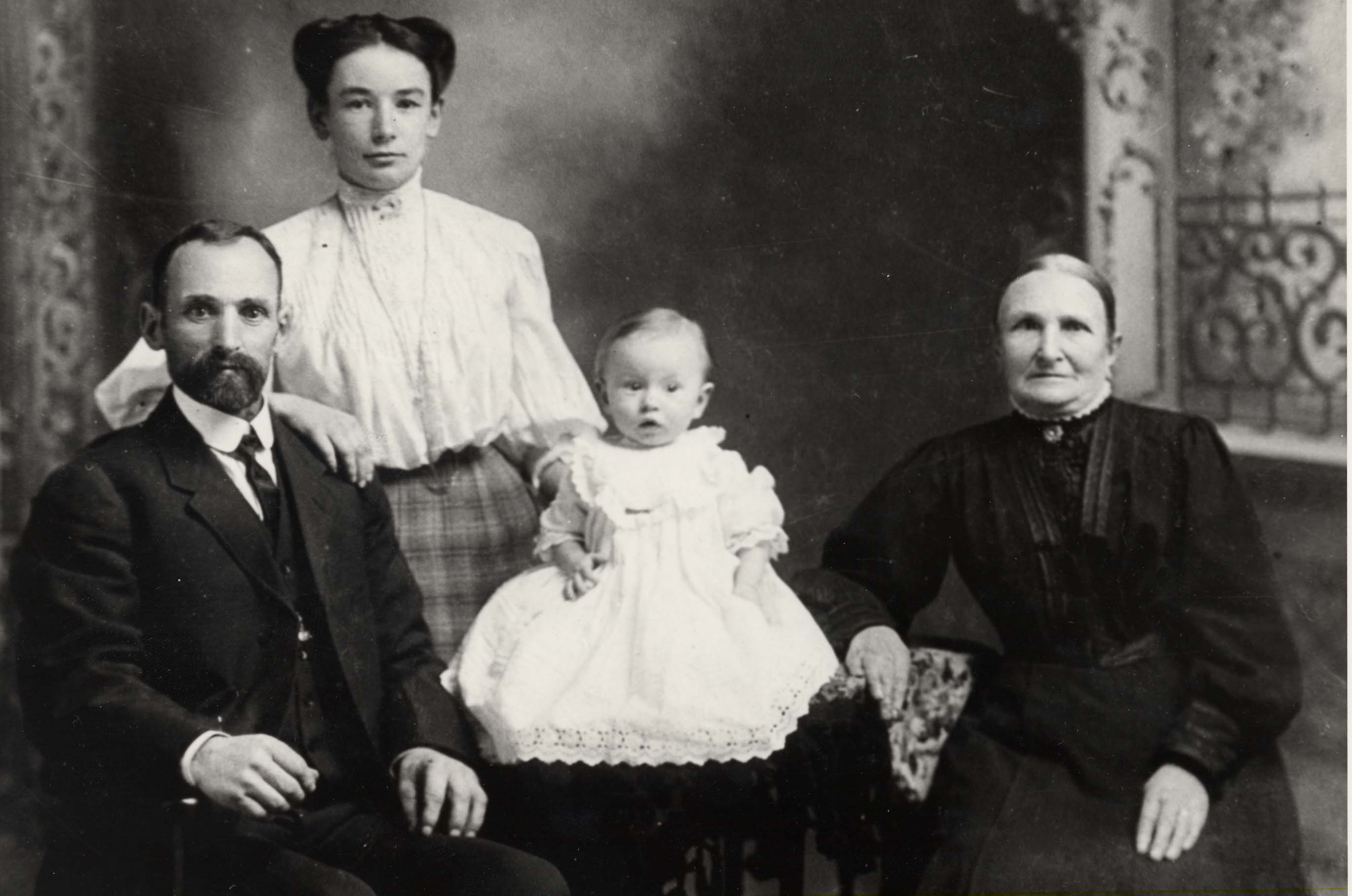 Four generations: John Soules, his daughter Pearl (Soules) Warnica, Allan Warnica and John Soules' mother, Mrs. James Soules (nee Jane Graham of East Gwillimbury born January 24, 1820.) Lived on Lot 26, Concession 13, Big Bay Point. ____________________________________________________ John Soules married Annie Guest, (grandfather and grandmother of Earl Warnica) his mother was Pearl Soules. James died in 1833 - lost in a storm on the lake (ice) coming back from Bradford where he went for supplies Further information is available at the Knock Heritage Site
