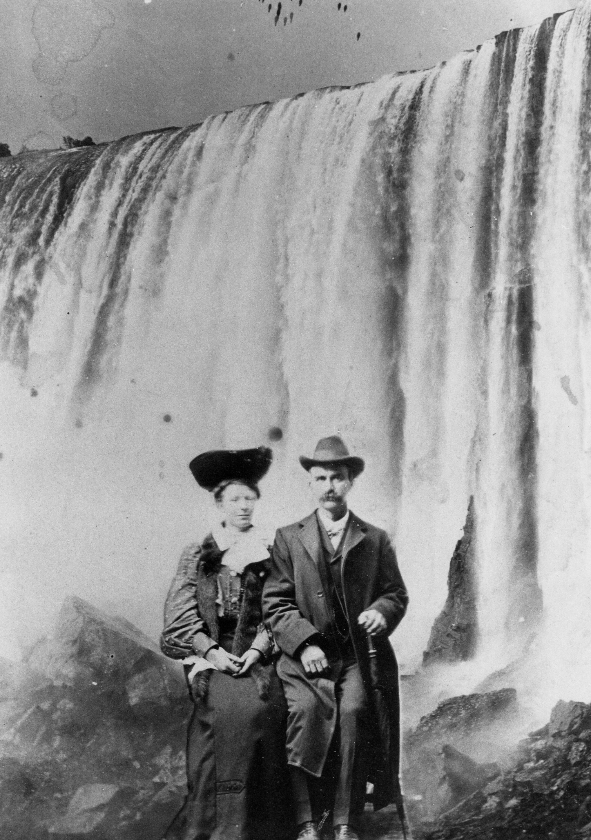 Honeymooning in Niagara Falls are Mr. and Mrs. John Boyes II, (nee Maud Corbett), September 1904.