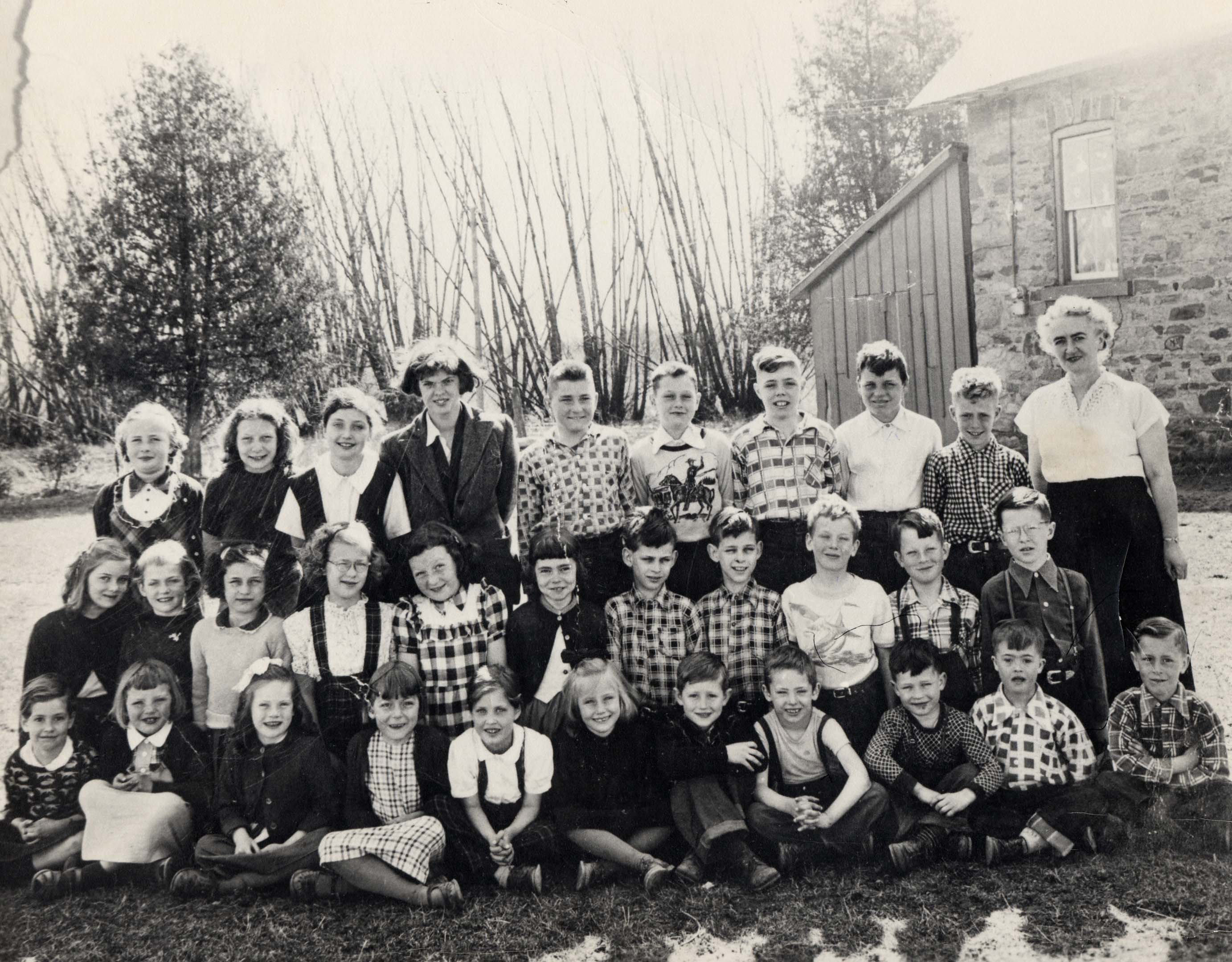 Back row: Mary Webster, Elizabeth Beatty, Beth Andrade, Muriel Paget, Walter Diaczenko, Norman Johnston, Gerald Smith, Allan Jones, Mrs. Doris Booth Middle row: Ethelynne Ryder, Edith__, Ron Cook, Ralph Cook, Frank Ivanski, Brian Law Front row: Kate Andrade, Carol Jones, Norma Archer, Jane Beatty, Beth Andrade, Anne Marie Steenholdt, Ronald Dietrich, (unknown), Ray Cook, Bernard Baldwin, Donald Smurthwaite.