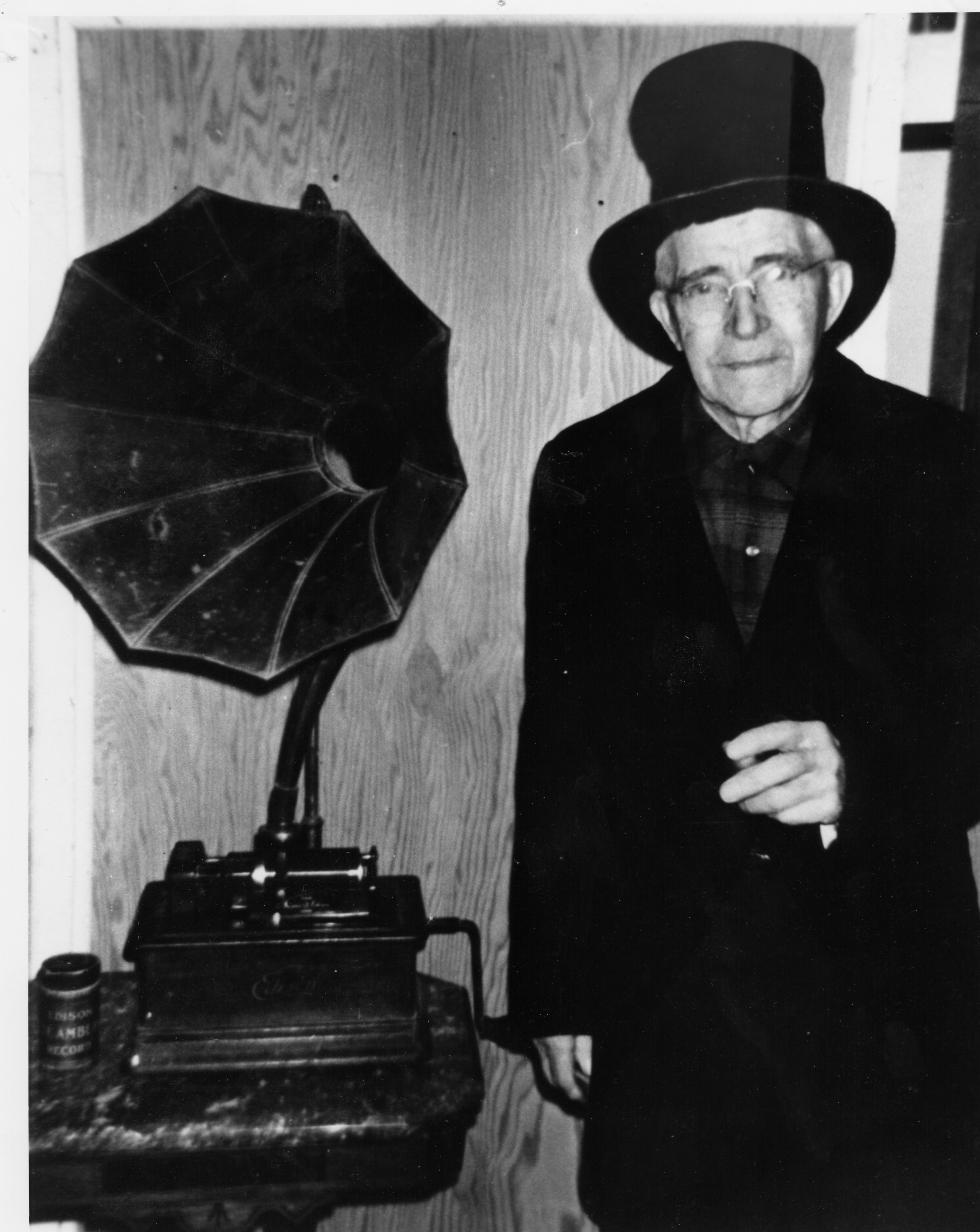 Photograph of Mr. Wilfred Stewart at an antique show in the Lefroy hall.