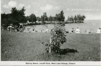 Black and white photo of bathing beach at Innisfil Park (now known as Innisfil Beach Park), Cedar Harbour, Ontario, IHS3790