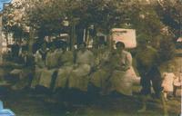 Group photo of taken of the first Sunday School picnic to Mr. W.H. Brunning's Cottage on Lake Simcoe. Pictured from left,