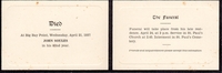 Scan of the funeral card for John William Soules, husband of Susana Guest. The card reads: "Died At Big Bay Point,