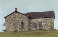 Image of a stone house built in 1860. The house was built in two sections on the site of an early log house. Two pioneer, IHS 4175