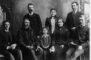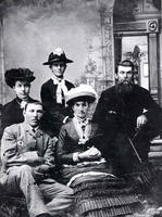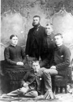 Studio image of Andrew Wallace and his wife, Ann Jane McCullough, and their family, taken in 1885. The men are wearing, IHS1239