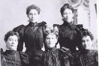 Portrait of the first cousins of the Quantz family. Front row:(left to right) John Pratt (Crown Hill), Mary Quantz (m., IHS150