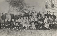 Photo of the Marshall family in front of their house, later known as Hunter's Poultry Farm. The original house burned, IHS1156