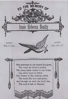 In memory of Annie Rebecca Beatty daughter of John Beatty Jr. and Sarah Ann Donnelly., IHS3575