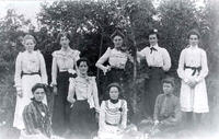 This photo was taken by John Thompson at his residence, in 1901. The occasion was the approaching marriage of Ethel, IHS102