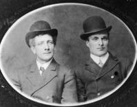 This photograph is Fred Rainey (left) and friend. Taken about 1902. He was born and raised at SH Lot 6, Innisfil Twp.,, IHS2499