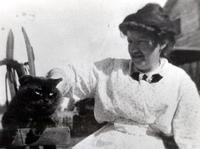 Photo of Agnes Jane Allan, the daughter of William Allan and Georgina McDonald, with her cat. Ms. Allan was a devoted, IHS1495