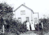 Photo of Letitia Baxter, (née Gibbons, wife of George Baxter) and a friend in front of the Baxter home, located south of, IHS31