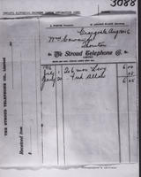 Invoices and receipts for telephone service. Wm. Cowan and Miss. Mary Cowan,from the Stroud Telephone Company 1913 to, IHS3088