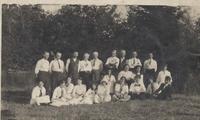 Front left to right: _______, May Allen, Milton Morton, Mildred Ayerst, Lucile Ayerst, Harvey King, Bessie Cunningham,, IHS2647