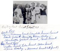 Photo taken of a group of members of the Guest family gathered on the Guest Farm in Big Bay Point in 1917. Pictured from