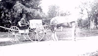 Photo of Charles Srigley in a horse drawn buggy. Mr. Srigley was the first mailman out of the Allandale Post Office. His, IHS1414