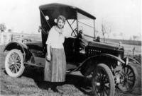Josie Reive, the daughter of Gilmour Reive and Lily (Allan) Reive standing beside a car belonging to R.L. Davidson, whom, IHS1520