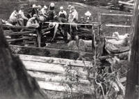 Sheep dipping at Alvin Wice's. Every spring after the sheep were clipped they were dipped in water solution with, IHS1846