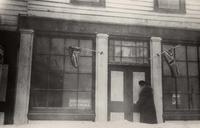 Innisfil Township Office, circa 1930, during a snow storm, southwest corner Churchill., IHS254