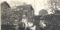 Bert McCracken is feeding the chickens at the home of his aunt and uncle, Bob and Jean Warnica. The winter supply of, IHS3898