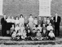 First Row Back: Mrs. Dora Martin (teacher), Glenn Harris, Billie Kidd, Clayton Ayers, Lorne Cooper, Wesley Willoughby,_, IHS828