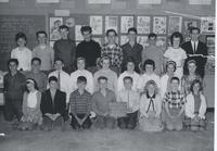 Alcona Beach Public School grade 6 to 8 class photo, 1963-64, with teacher Lloyd Ellesworth. Pictured from left to right, IHS4103
