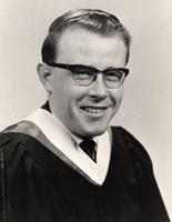 Graduation portrait of Allan Wayne Stewart, son of Mr. Russell Stewart and Mrs. Ruth Stewart (née Allan). He received a, IHS1371
