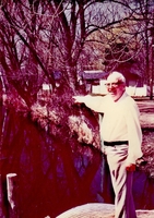 Photograph of Ward Goodfellow beside the canal on Goodfellow Avenue, at the bottom of 9th line. The canal was dug in the