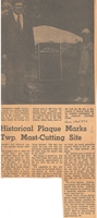Newspaper clipping of an article about the first historical plaque in Innisfil, unveiled Sunday June 23rd at 2:30pm.