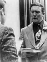 Candid photo of William A. Gibbins on the day he was sworn in as Reeve of Innisfil Township by Clerk Richard Groh. Mr., IHS2551
