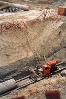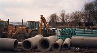 Sewer parts being installed in field close to Railway Tracks between Victoria and Selby Streets.,