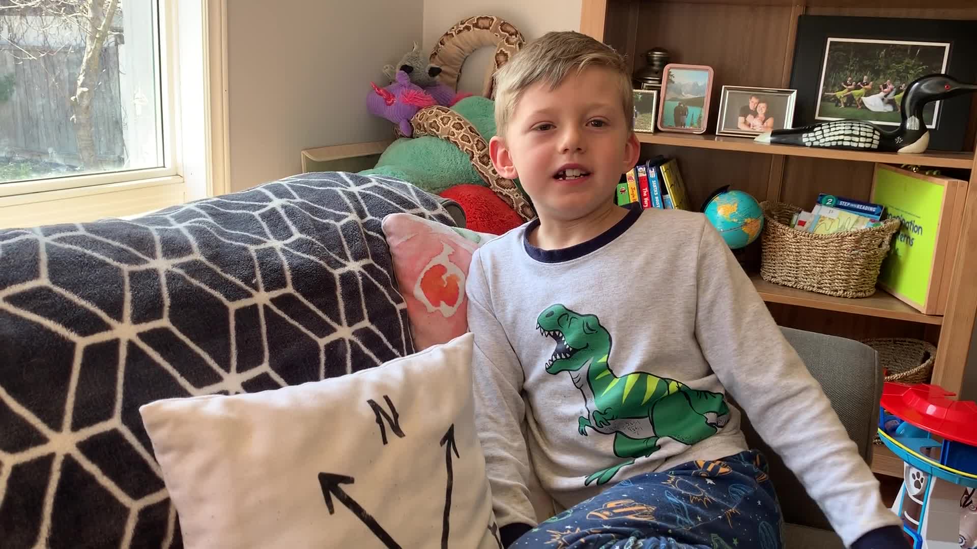 Video of Bruce Wood, age 7, home from school during the outbreak of Covid-19. Interviewed by his mom Kathy Hammer and