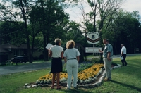 Photograph of a Town of Innisfil welcome sign; the sign features the town crest, and below in an addition message saying