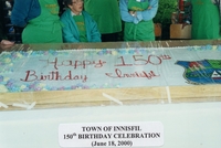 The cake present at the celebration of the Town of Innisfil's 150th Birthday Celebration, June 18th 2000. The cake