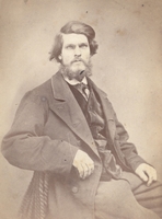 Photo of Adam Myers, a seated man with a beard wearing a wool coat and trousers. The following account was provided by