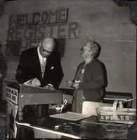 Hon. W. Earl Rowe - Lt. Gov. of Ontario signing the Registration Book with Mrs. Mary Nevils.,
