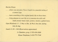 Scan of the front cover a promotional leaflet for the Barclay House Tea Room and Craft Shop including a drawing of the