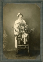 Graduation Portrait of Eleanor Elizabeth Zeta Barclay, known as Zeta. She is pictured standing in front of a large