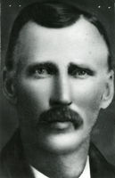 Portrait of John Barclay sporting a moustache as an early to middle aged man. The collar of his shirt and jacket are
