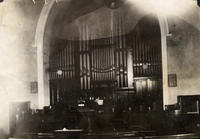 The interior of Cookstown United Church, showing the pipe organ at the front of the Church.,