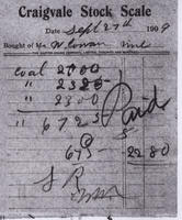 Copy of a statement from the Craigvale Stock Scale dated to 27 September 1909 and issued to Mr. W. Cowan. The statement, IHS3100