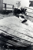 Photograph of Wallace Edward Sloan, known as "Billy" (brother of Harry Sloan) atop the stone at the end of the driving, IHS519