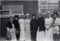 The C.G.I.T. Girls and their float as it waited after the parade at the Fair grounds to be judged. Also the Bradford,
