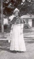 Mrs. Alice Baker pictured wearing a dress, which was Miss Miller's wedding dress in 1893.,