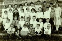 Dorothy Pratt on her first day of school, at the Fifth Line School, SS #7, Churchill. Circa 1932 - Notice lunch pail, a, IHS3579s, IHS3819