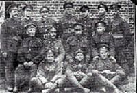 Photograph scanned from the Barrie Examiner newspaper depicting a group of soldiers from the front, likely during World