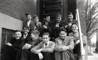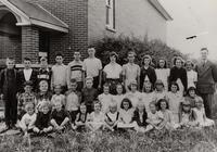 Seated on the church steps on the occasion of St. James' Centennial (1852-1952). Back Row: Charles Horton, Dennis, IHS2236