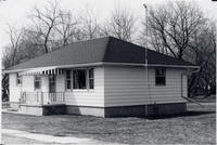 Photo of Big Bay Point school with church in background. The school was located in Lot 23, and the church, which was, IHS1029
