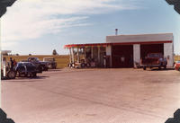 Photo of Catharine Frizzel in front of the blacksmith shop, opposite the Edward Sloan house, and east of the corner., IHS530